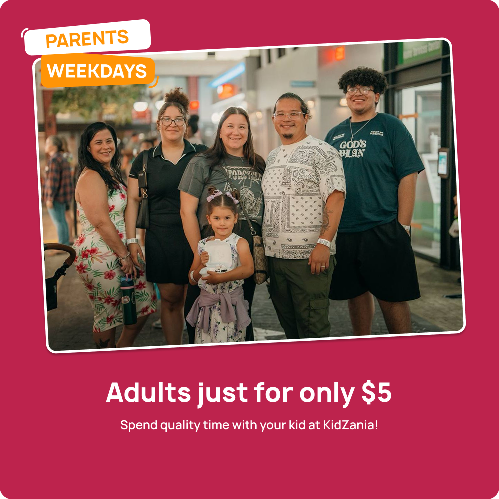 *Offer valid online only through June 26, 2025 for visits from June 23 through June 26, 2025. Discount applies to dated tickets only. Not valid for Memberships, Season Passes, Birthday Parties, Field Trips or open-date tickets. Offer valid only with a child ticket purchase. Adults must accompany children. No adult-only entry allowed.