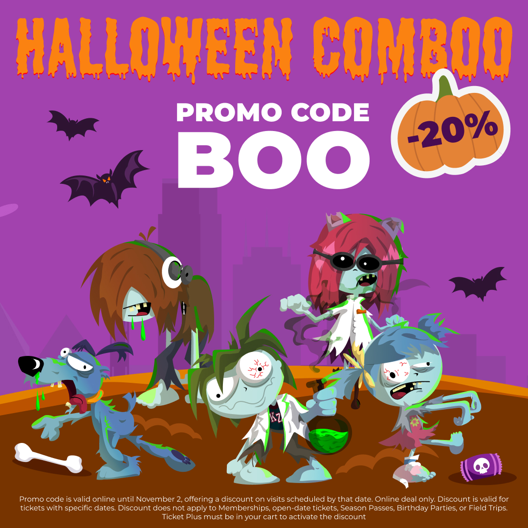 *Promo code is valid online until November 2, offering a discount on visits scheduled by that date. Online deal only. Discount is valid for tickets with specific dates. Discount does not apply to Memberships, open-date tickets, Season Passes, Birthday Parties, or Field Trips. Ticket Plus must be in your cart to activate the discount.